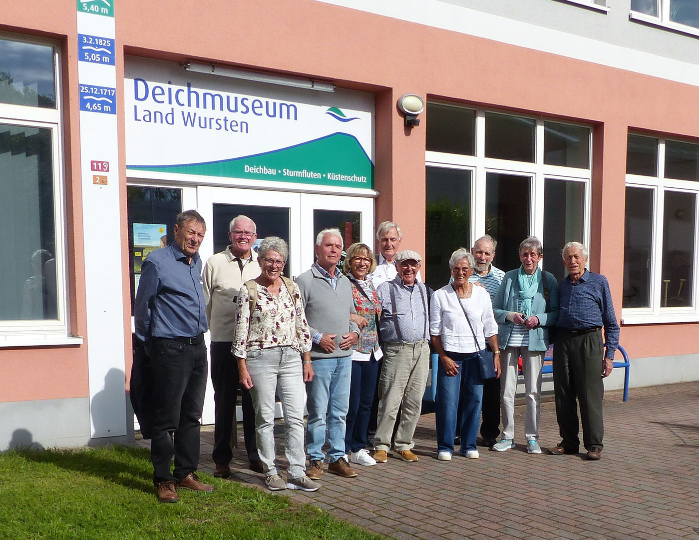 11 ehemalige Schüler der Volksschule Weddewarden-Imsum haben ihr 75. Jubiläum ihres Einschulungsjahres 1950 mit einem Besuch im Deichmuseum Land Wursten verbunden.